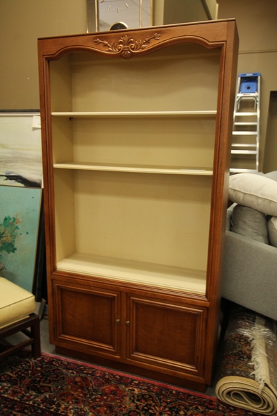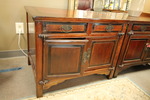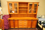 | "Lovely cherry wood china hutch and buffet, in near mint condition, except one strip wood in the back, shelves are missing, price as marked." |