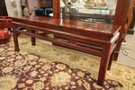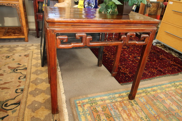 Size: 28W 28D 25H Color/Mat'l/Artist: "Rosewood Finish, Rustic, Selected Wood, Carved Details" |