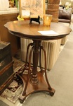Size: 28 Diameter 30H Color/Mat'l/Artist: "Wood, Dark Finish, Pedestal Base with Tambour doors" |