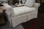 Size: 20W 21D 39H Color/Mat'l/Artist: "Floral Rose Dusty Red Patterned Upholstery, Queen Anne Legs" |