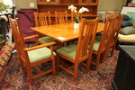 | "Set includes, 1 Dining Table Trestle Base, 6 Side Chairs, 2 Armchairs, 2 extension side leaves at 18W" |