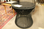 Size: 38 Diameter 17H Color/Mat'l/Artist: "Glass Top, Brass Base, Visible Imperfections attribute with age and use" |