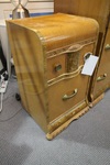 | "This piece has been used as a file cabinet, but it can easily be converted into drawer storage or even serve as a bedside chest." |