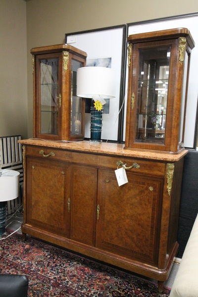 | An early 18th?century piece with a marble top and twin beveled?glass display cabinets. The Cabinet is Lighted but needs to be fixed. However it carries the charming attributes of age and use while still being impressively well preserved and in near?mint condition. We have no certifications. Price as marked and sold as-is. |