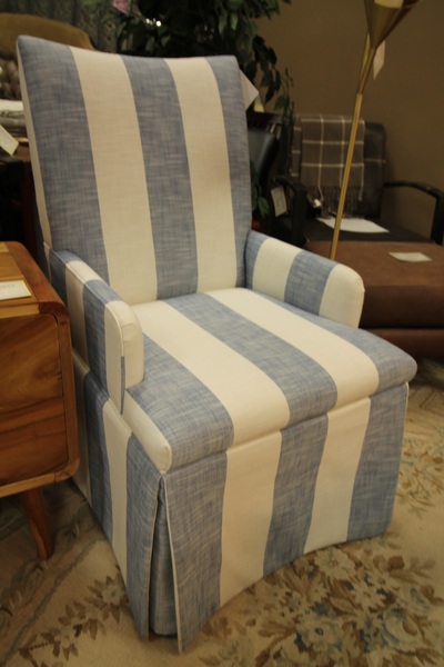 Size: 24W 25D 42H Color/Mat'l/Artist: "Denim Like Striped White & Blue Upholstery, Casters" |