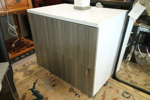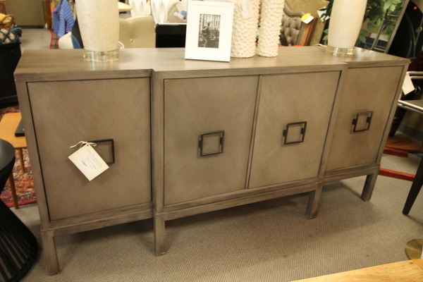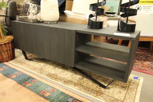 Size: 40W 16D 38H Color/Mat'l/Artist: "Ashwood, 2-Door, Reeded Front, Charcoal Gray & Black Base" |