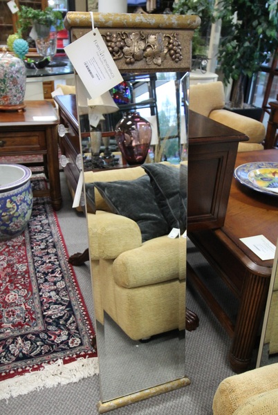Size: 53L 21D 36H Color/Mat'l/Artist: "Scrolled Glass Top, Burnished Finish with gold accent" |