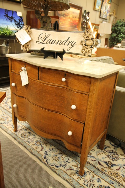 Size: 24W 16D 24.5H Color/Mat'l/Artist: "Marble Top, Solid Wood, Selected Veneers, Dovetailed Drawers" |