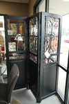 Size: 60W 24D 24H Color/Mat'l/Artist: "Wood, Cherry Finish, Glass Paneled Doors" |